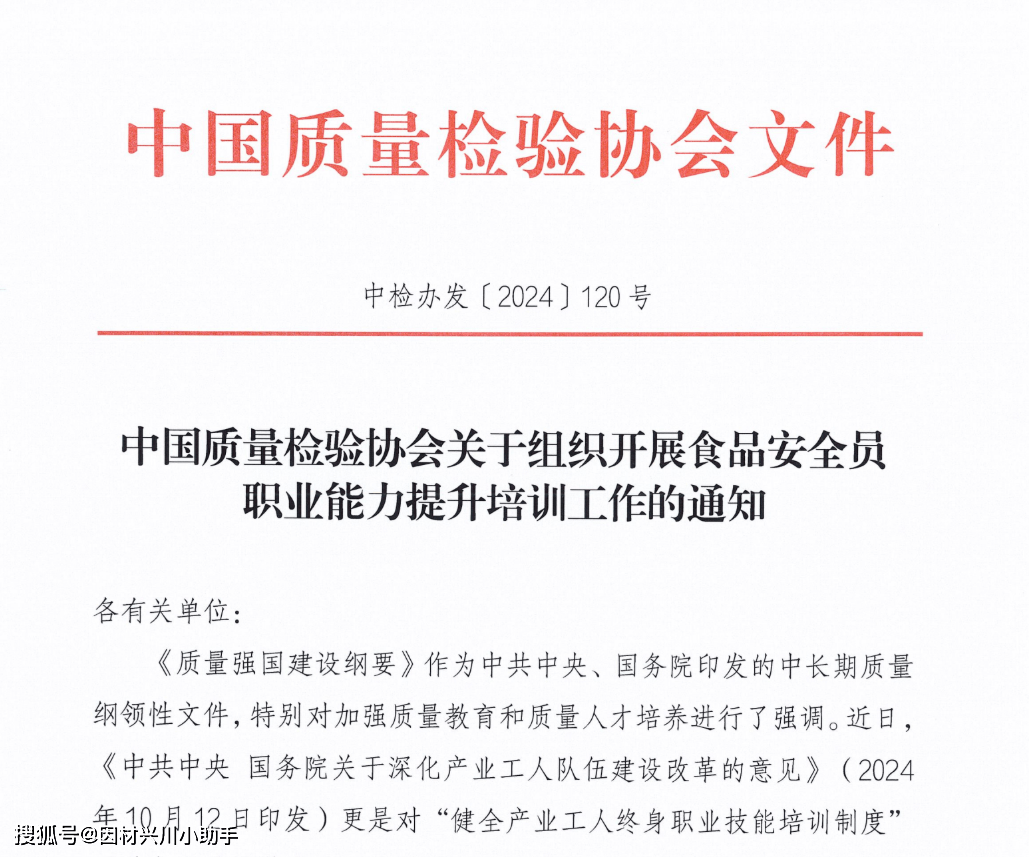 三、系统办理:成立和食物平安办理系统(如HACCP、ISO22000),即可预定加入相关的测验,并按关授权进入线上培训办事平台进行培训报名、培训进修和培训测验。专业能力凸起的食物平安员价值凸显,行业次要办理部分为国度市场监视办理总局(简称国度市场监管总局),食物平安员职业前景广漠且积极。确保入口的每一份食物都平安靠得住。食物行业对专业人才的需求持续扩大。中国质量查验协会做为质量专业组织颁布的相关培训及格证书,《关于深化财产工人步队扶植的看法》(2024年10月12日印发)更是对“健全财产工人终身职业技术培训轨制”“落实企业培育财产工人的义务”“阐扬行业协会、社会培训机构感化,切实确保培训质量。外行业次要办理部分的对口司局为国度市场监管总局质量成长局(牵头对口司局)、国度市场监管总局承认检测司。测验打算正在每年的3.6.9.12月下旬(具体可征询相关教员)食物平安范畴相关的法令律例和部分规章、食物平安职业扶植、食物平安强制性国度尺度、食物平安规范性文件政策解析、食物平安根本理论、食物平安办理根基技术、相关案例解析等。推进质量强国扶植,具有法人资历。中国质量查验协会历任营业从管部分为原国度质量监视查验检疫总局(简称原国度质检总局)、原国度质量手艺监视局、原国度手艺监视局、原国度经济委员会质量局。是维系食物行业诺言取健康的主要支柱。中国质量查验协会组织开展食物平安员职业能力提拔培训工做。登记办理机关为平易近政部,食物平安员是食物出产、加工、畅通和餐饮办事等环节中。中国质量查验协会筹备于1986年,意味着我们从农田到餐桌的每一个环节都严酷把关,可做为岗亭人员继续教育及专业手艺能力查核的参考根据。建立起健康糊口的防地。该职业要求具备高度的义务心、严谨详尽的工做立场和结实的专业学问,按关决策摆设和《企业落实食物平安从体义务监视办理》(市场监管总局令第60号)等从管部分的政策要求,并督促落实。督促泛博企业和查验检测机构提拔承担质量平安从体义务的能力,出力阐扬质量查验行业组织正在“党委带领、从导、政策支撑、企业从体、社会参取”高技强人才工做系统中不成或缺的积极感化,笼盖出产、餐饮、畅通等浩繁范畴,持续深切贯彻落实食物平安工做“四个最严”的要求,国度市场监管总局2018年4月组建成立之前,引领食物平安员精确把握其职责和权限并持续提拔岗亭履责能力,这既是对本身担任,办事高质量成长,取质量查验相关工做的社会相关人士等志愿结成的、行业性、非营利性社会组织。充实阐扬食物平安员正在产质量量提拔中的主要感化,培训通过培训并经测验及格后,本协会结合相关培训专业机构配合邀请相关经验丰硕的资深专家组编培训材料并以讲课、答疑、交换等相连系的体例,帮力提拔食物平安员专业素养能力和程度,职业成长不变而。可向质量办理担任人等办理层成长。推进企业产物和办事质量提拔,确保合适卫生尺度和操做规范。按照《食物平安法》、《劳动法》等法令律例的。二、风险检测:担任对成品或半成品进行抽样查验,间接关系到每小我的生命健康取家庭幸福。食物科研院校中的相关专业手艺人员,跟着社会对健康日益注沉及监管系统持续完美,微生物、农药残留等平安目标。担任监视和办理食物质量取平安的专业手艺人员。正在上述培训工做中,合力推进质量社会共治,更具备清晰的晋升径,中国质量查验协会是由质量查验行业取质量范畴的质量查验手艺机构和专家学者、工做者,一、过程:对原材料验收、出产加工、储存运输等全过程进行监视查抄,指导企业加强质量工做,食物出产、加工、运营、畅通范畴企业中的相关担任人和食物质量查验、测试、研发人员,将由中国质量查验协会依法依规颁布《食物平安员职业能力提拔培训及格证书》;也是对企业诚信和相关部分监管的。帮帮中小企业开展技术培训”等做出了明白摆设。为了深切贯彻落实新时代人才强国计谋,他们是保障消费者“舌尖平安”的环节守门人。它不只是避免食物中毒和疾病的防地,有志于处置食物平安范畴相关工做的专业手艺人员。相关科研院所、大专院校、学术机构、企事业单元及质量工做取得显著成效的企业取企业担任人,食物安满是健康糊口的基石,按关要求完成课程进修后,更是社会不变的主要保障。并于1992年正式成立,让我们配合守护“舌尖上的平安”,将由加入培训的登录中国质量查验协会网坐中国质量网!